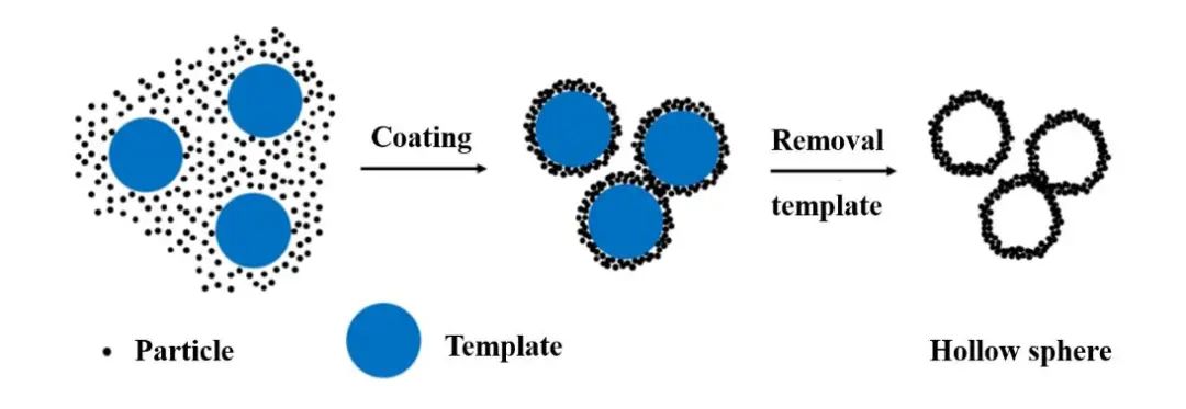 模板法是制備空心微球的一類常用方法[19,20]。模板法是在顆粒的制備過程中,采用液滴、氣腔和膠粒等模板作為顆粒形成的基底,通過吸附、沉淀、界面反應等過程,在基底表面形成所需要的顆粒,再通過燒結氧化、化學腐蝕、氧化還原等過程去除模板,從而得到空心陶瓷微球[21]。模板法制備空心微球示意圖如圖1[21]所示。模板法具有原理簡單、重復率高以及性能穩定等特點,近年來,越來越多的研究人員采用模板法進行二氧化鋯空心微球的制備[11]。
