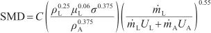 式中,SMD為索特爾中位粒徑,C為常數且和霧化器設計有關,ρ, μ, σ, U和