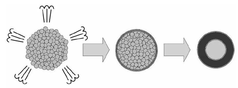圖4 等離子體燒結形成空心結構的原理示意圖[50]Fig.4 Principle schematic diagram of formation of hollow particles by plasma sintering process[50]