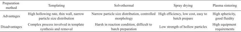 表1 ZrO2空心微球制備方法總結Table 1 The summary of preparation techniques of ZrO2 hollow microspheres
