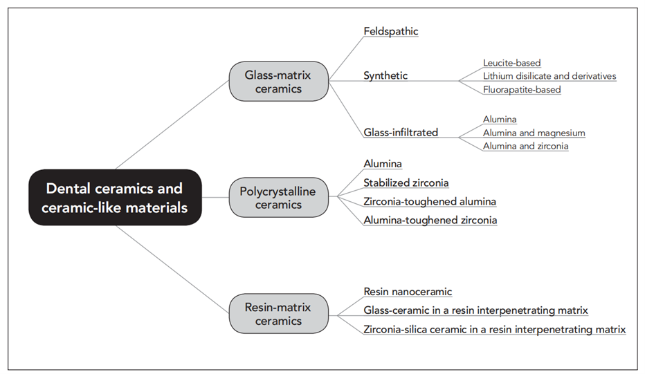 有研究者根據(jù)材料微觀構(gòu)成中玻璃相與晶相含量的不同,將全瓷材料分為三類: