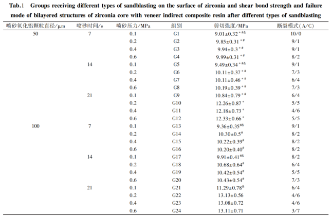 從國外這位學者得出的的數據可知,在不同顆粒大小的氧化鋯噴砂下的斷裂強度,不論是干燥儲存還是是儲存相比對照組都是增大的,由此可知不論是從它的粘接強度還是陶瓷的機械強度來說都是有利的。綜上所述,考慮到氧化鋯的的表面粗糙度,機械強度,以及粘接強度,采用0.2MPa及 50μm或者110μm的噴砂條件對使氧化鋯與間接修復樹脂界面的粘結強度較佳,是較為推薦的噴砂條件。